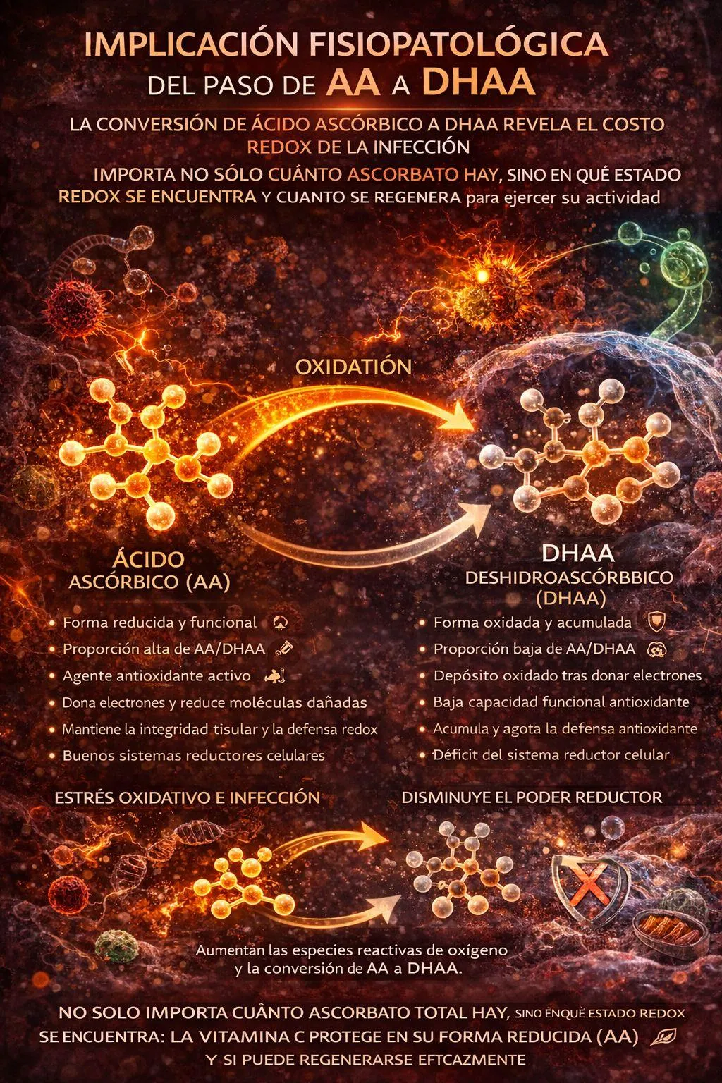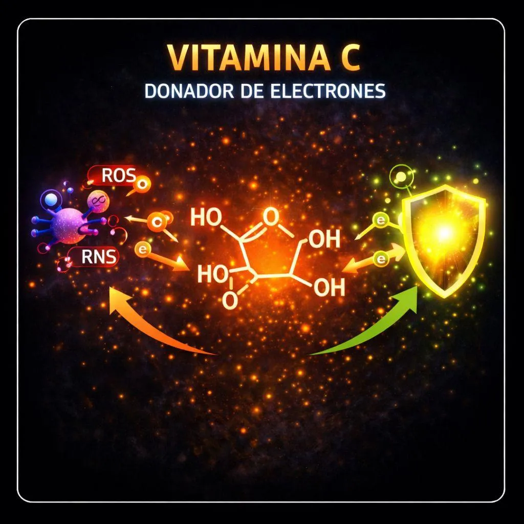 Potente efecto oxidoreductor: La bioquímica nutricional de la Vitamina C te enseña los pasos por los cuales actúa en las infecciones según su estado reductor.